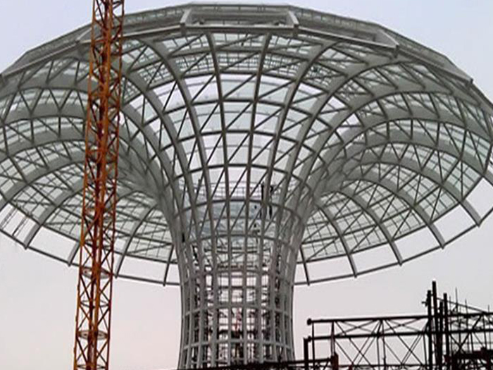二、球形网架结构因其结构新颖,受力合理,自重轻、用钢量低等优点。如大型体育场馆球形定州螺栓球网架、公共场馆球形网架、电厂定州螺栓球网架、水泥工业球形网架、仓储物流球形网架、定州干煤棚工业球形网架、定州收费站定州加油站球形网架、展览中心、影剧院、商场、航站楼、候车厅、工厂定州车间、仓库、电视塔等球形螺栓球节点网架。国内球形网架结构主要分为:定州焊接球节点网架及螺栓球节点网架两种。螺栓球节点网架其构件工厂内加工量较大,现场安装便捷,适用于现场工期紧,定州施工条件、用电量受制约,网架形状复杂、定州杆件定位困难的异形结构。螺栓球节点球形网架系统基本由定州杆件、螺栓球、支撑支座等组成。按照节点形式可分为交叉定州桁架体系、四角锥体系、三角锥体系等。支撑方式多为固定支座支撑。对于大面积、大跨度及有特殊受力或伸缩要求的网架结构可采用橡胶支座、滑移支座、球铰支座等支撑形式,以满足结构自身的受力稳定、均衡,便于内力释放等设计要求。